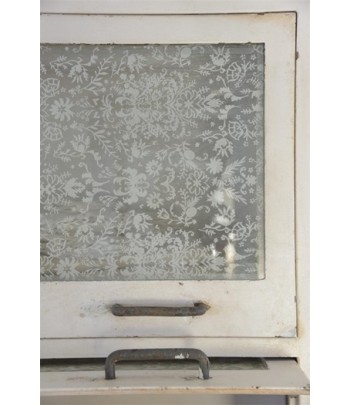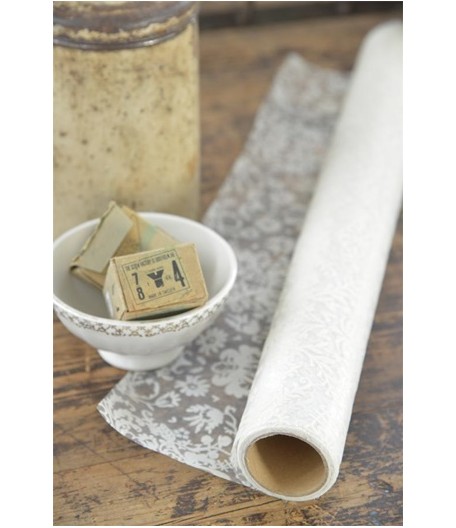 Rotolo di 5 metri x 48 cm di tessuto trasparente con motivo bianco-crema.
