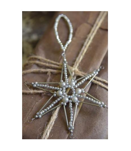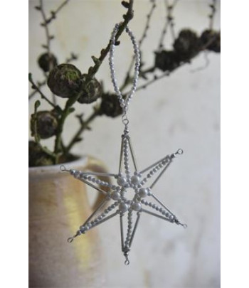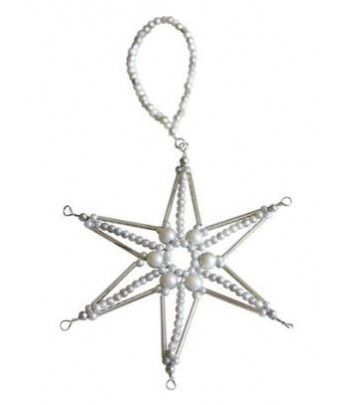 Decorazione natalizi, stella a 6 punte con perle di colore grigio e bianco.
