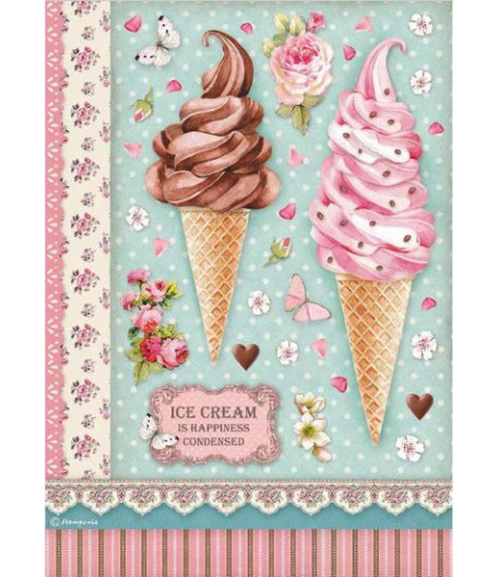 Carta di riso da découpage in formato A4 Gelato by Stamperia.