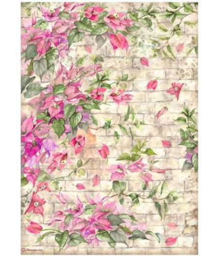 Carta di riso da découpage in formato A4 Blue land fiore by Stamperia.