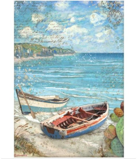 Carta di riso da découpage in formato A4 Blue land fiore by Stamperia.