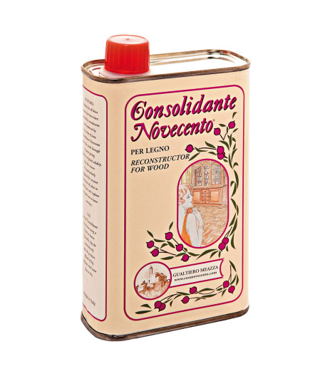 Consolidante Novecento è un liquido incolore che permette di ricompattare la struttura di legni che si sono indeboliti e si sfaldano o polverizzano a causa dell’azione del tarlo e del tempo.