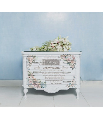 Bellissimo TRANSFER (trasferibile) con stampe floreali, applicabile, semplicemente grattando, con l'apposito accessorio incluso nella confezione, su tutte le superfici: mobili, pareti, oggetti, vetri e specchi. Si raccomanda un'accurata pulizia del supporto prima dell'uso e di far asciugare perfettamente il supporto se verniciato. Proteggere, dopo l'applicazione, con cera trasparente o vernice protettiva.