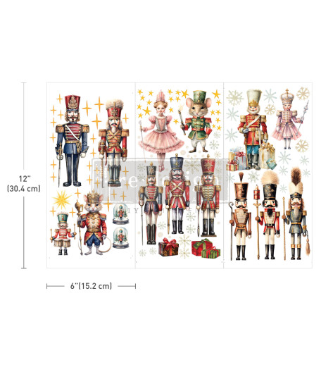 Porta l'incantevole mondo del balletto dello Schiaccianoci nei tuoi progetti natalizi con il Decor Transfer "Schiaccianoci Natale". Questo set presenta tre diversi fogli da 8,5 "x11", con immagini splendidamente dettagliate dello Schiaccianoci, della Fata Confetto, del Re dei topi e altro ancora. Perfetto per trasformare scatole regalo, mobili e altri oggetti decorativi in pezzi magici che catturano lo spirito dell'amato balletto. Lascia che questi design stravaganti e festosi aggiungano un tocco di eleganza teatrale e magia natalizia alla tua casa.