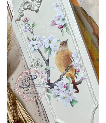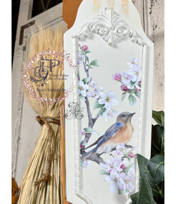 Bellissimo TRANSFER (trasferibile) con stampe floreali, applicabile, semplicemente grattando, con l'apposito accessorio incluso nella confezione, su tutte le superfici: mobili, pareti, oggetti, vetri e specchi. Si raccomanda un'accurata pulizia del supporto prima dell'uso e di far asciugare perfettamente il supporto se verniciato. Proteggere, dopo l'applicazione, con cera trasparente o vernice protettiva.