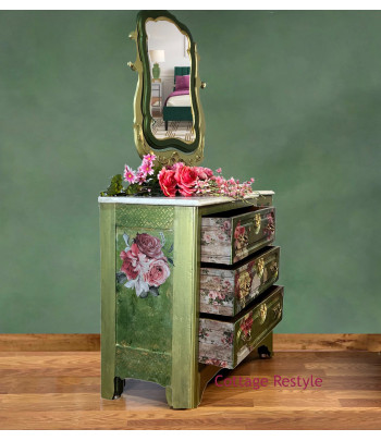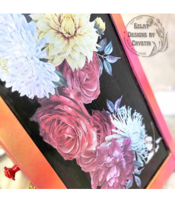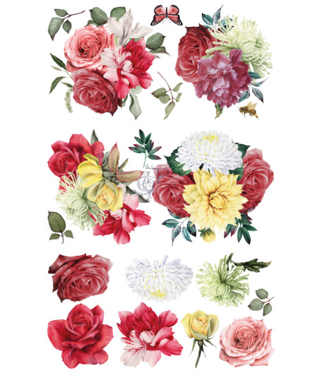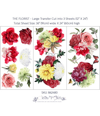 Bellissimo TRANSFER (trasferibile) con stampe floreali, applicabile, semplicemente grattando, con l'apposito accessorio incluso nella confezione, su tutte le superfici: mobili, pareti, oggetti, vetri e specchi. Si raccomanda un'accurata pulizia del supporto prima dell'uso e di far asciugare perfettamente il supporto se verniciato. Proteggere, dopo l'applicazione, con cera trasparente o vernice protettiva.