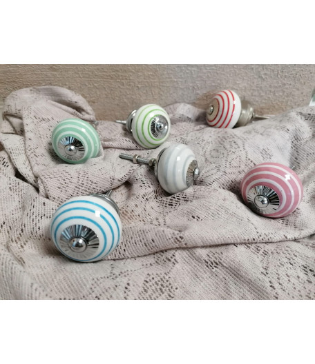 Pomello in ceramica decorato con righe.