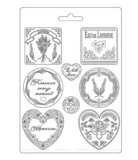 Stamperia Stampo Morbido Maxi - PROVENCE TARGHETTE E CUORI 21 x 29,7 cm