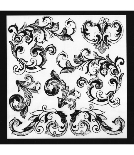 Timbro in alta definizione, utilizzabile per la decorazione di torte e dolci e per tutte le superfici (mobili, pareti, tessuto, ecc.). Si può adoperare con una qualunque vernice a gesso o con l'inchiostro. Per facilitare l'applicazione, si possono usare i fogli semirigidi inclusi nella confezione o gli appositi blocchi acrilici.