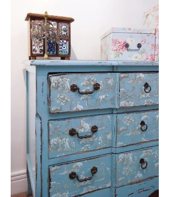 Bellissimo TRANSFER (trasferibile) con stampe floreali, applicabile, semplicemente grattando, con l'apposito accessorio incluso nella confezione, su tutte le superfici: mobili, pareti, oggetti, vetri e specchi. Si raccomanda un'accurata pulizia del supporto prima dell'uso e di far asciugare perfettamente il supporto se verniciato. Proteggere, dopo l'applicazione, con cera trasparente o vernice protettiva.